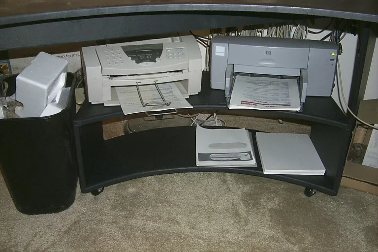 The ring tables pieces were too big and oddly shaped to easily store, and were finally cut up and discarded. The only remaining piece of the table is the printer stand (which is also the only piece that I built myself), and it still sits under my desk fulfilling its original purpose.