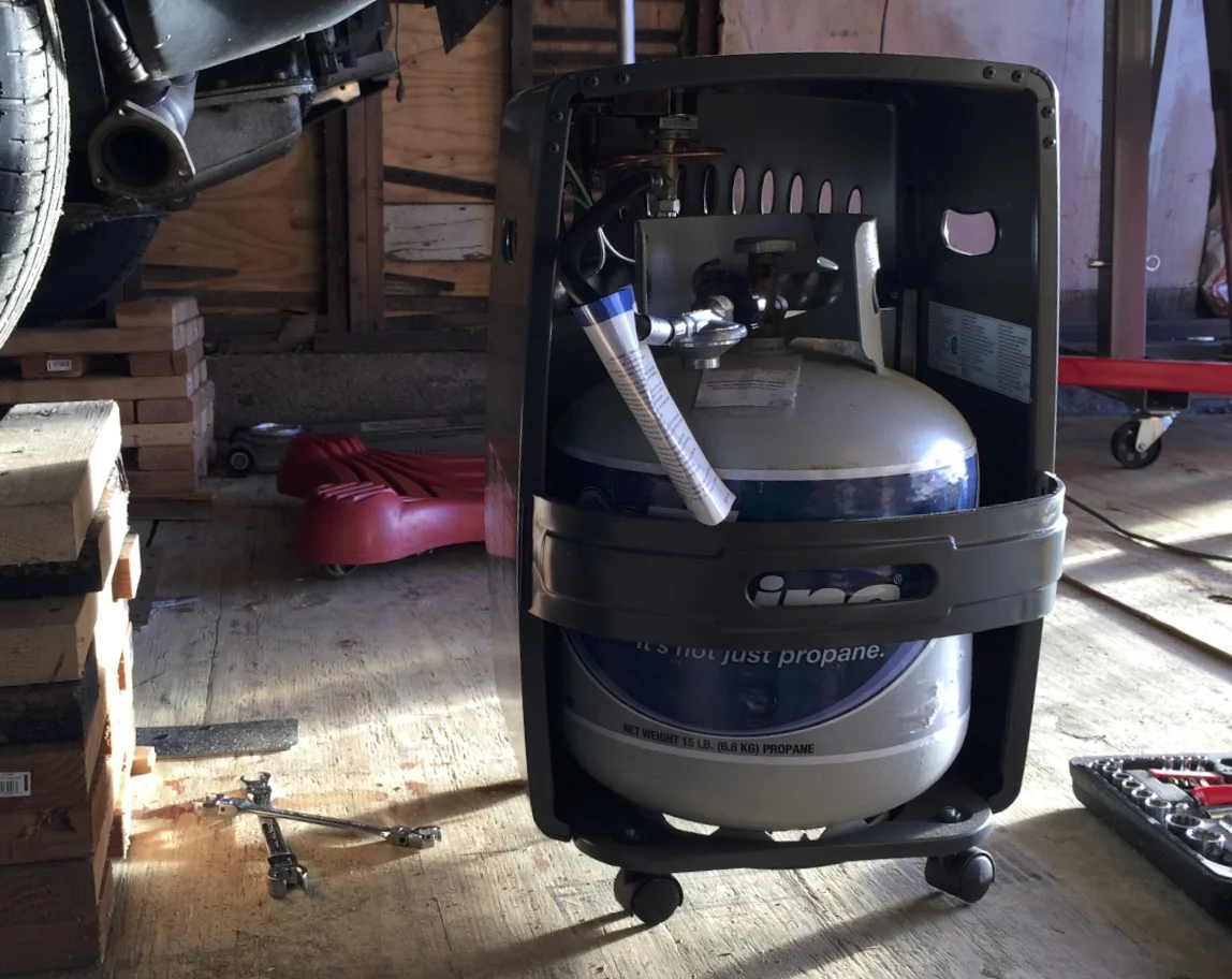 Because of this, I'm currently driving the propane canister home and storing it under my grill when I'm not at the garage.