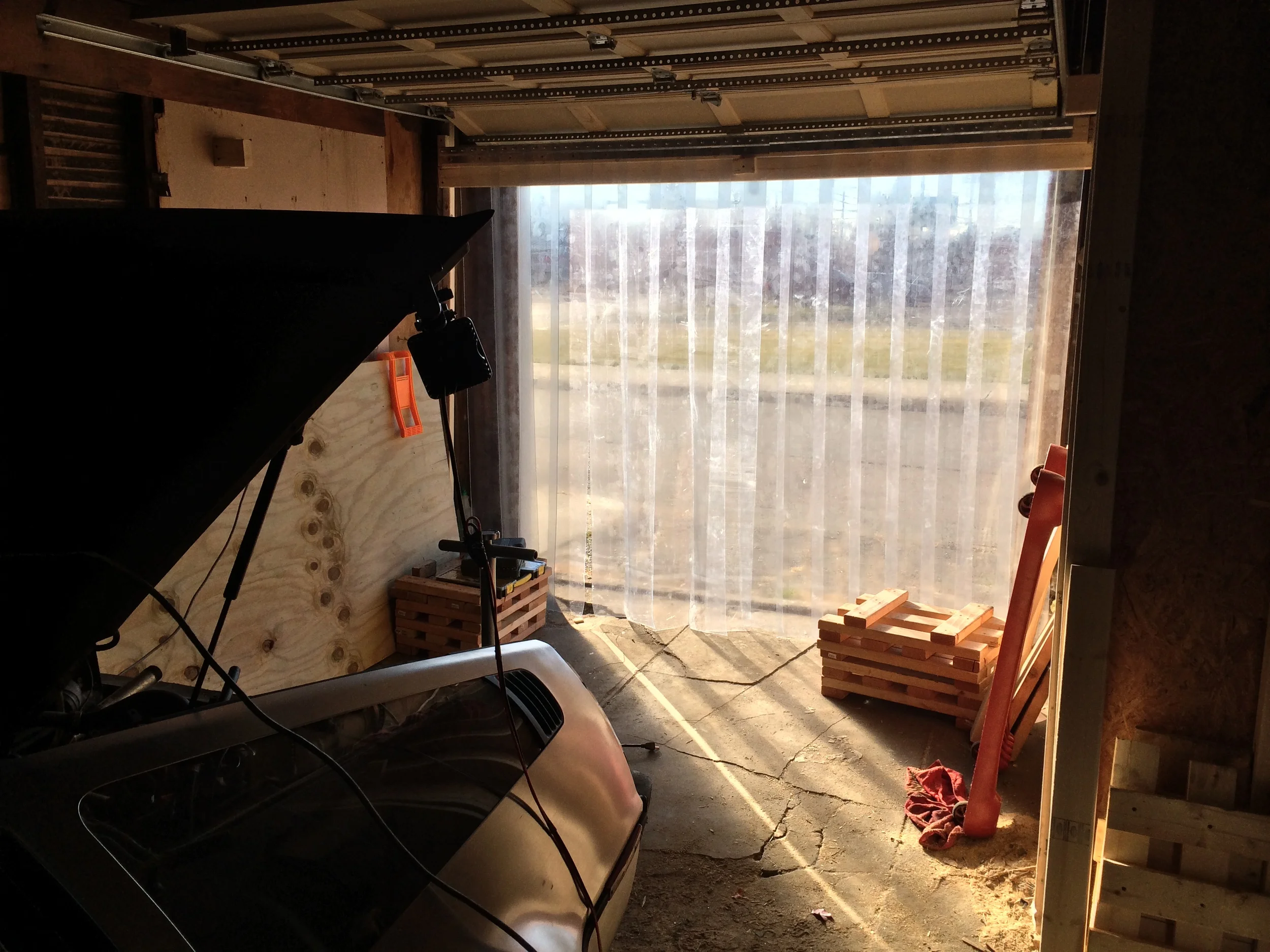 We'll see how well this works this winter. We had a particularly windy day with 30 degree temperatures, and while the curtains fluttered around they did keep the wind from blowing through the garage, and kept the heat in. It wasn't like having full-on indoor heating, but it worked well enough that I didn't have a problem working with the metal tools and engine; without heating, metal feels extremely cold and is hard to hold onto for any length of time.