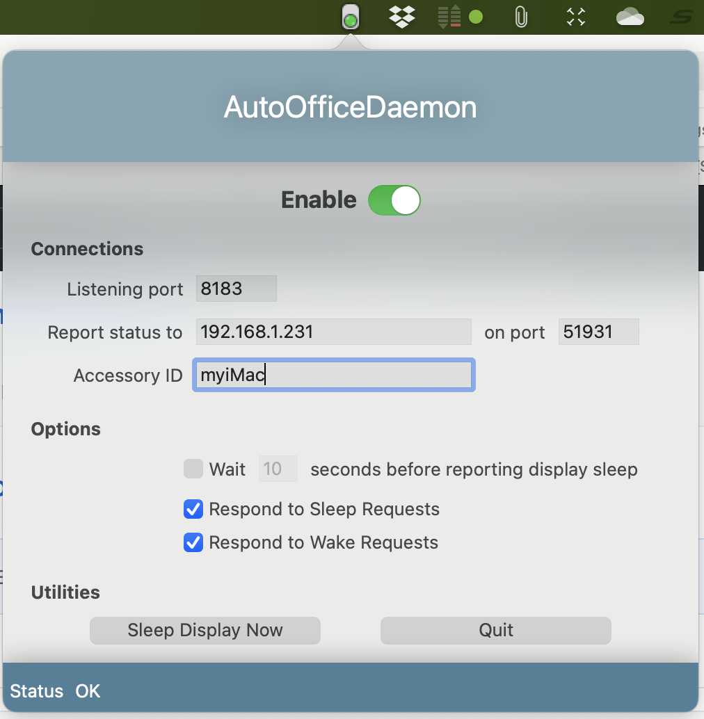 The simple AutoOfficeDaemon UI,a s configured for my iMac.